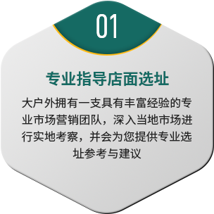 大戶外擁有一支具有豐富經(jīng)驗的專業(yè)市場營銷團(tuán)隊,深入當(dāng)?shù)厥袌鲞M(jìn)行實地考察,并會為您提供專業(yè)選址參考與建議。
