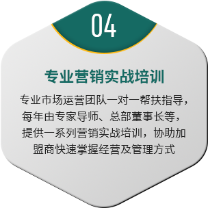 專業(yè)市場運營團(tuán)隊一對一幫扶指導(dǎo),每年由專家導(dǎo)師、總部董事長等,提供一系列營銷實戰(zhàn)培訓(xùn),協(xié)助加盟商快速掌握經(jīng)營及管理方式