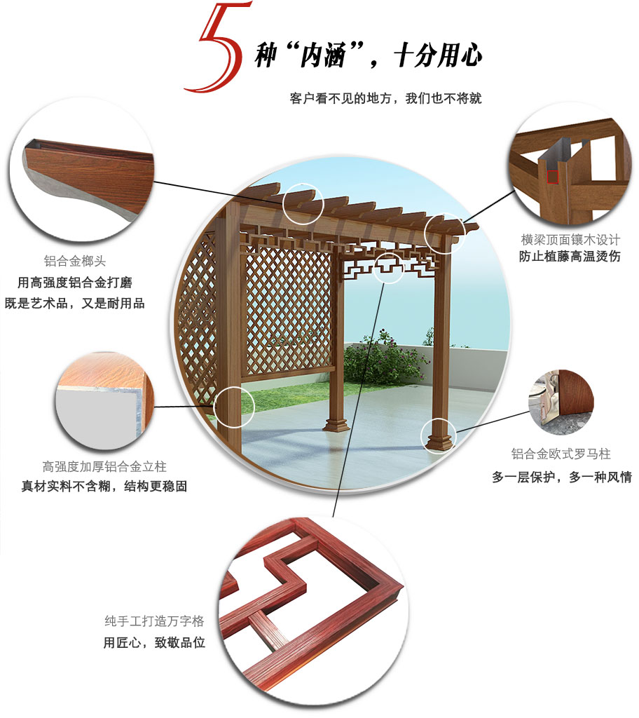 鋁合金結(jié)構(gòu)性能優(yōu)越,不開裂、不變形、不生銹、不褪色、防蟲蛀,無需刻意維護(hù)便可長久使用