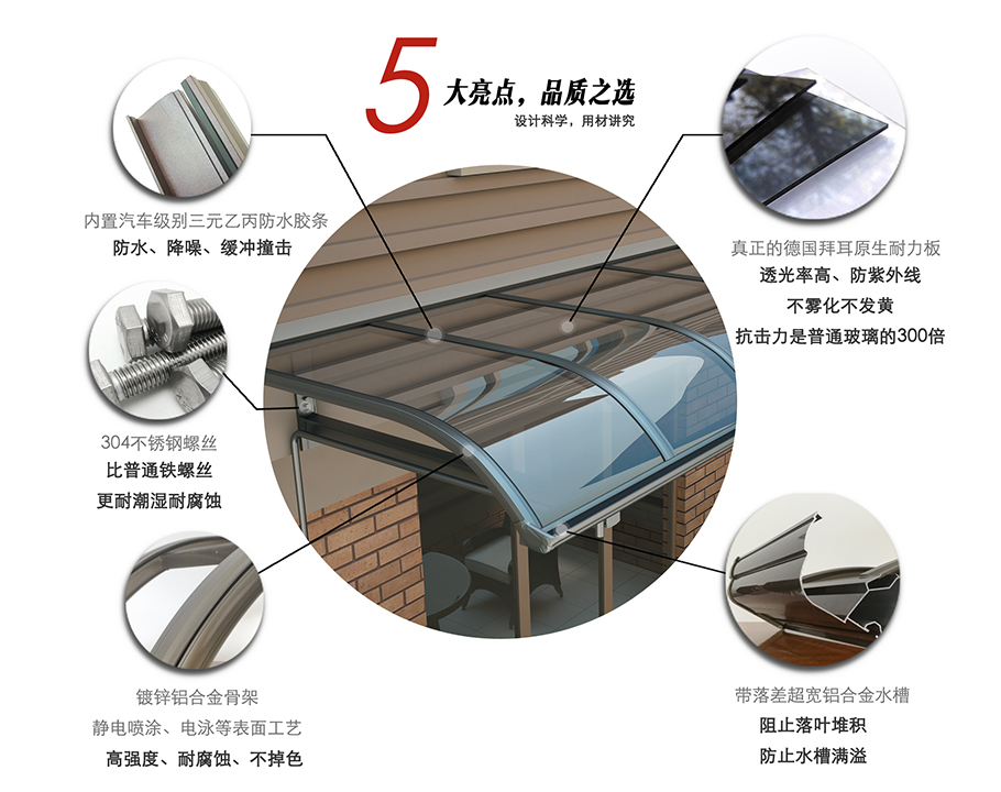 加強型鋁合金骨架,抗、紫外線進口耐力板,不變形不變色,歷久彌新