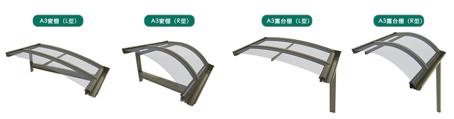 款式:A3款窗棚(L、R型)、A3款露臺棚(L、R型)