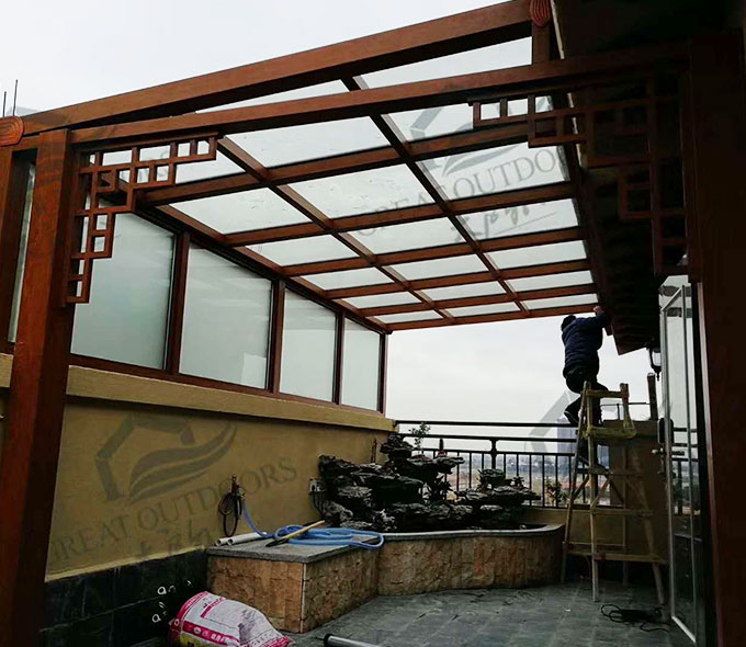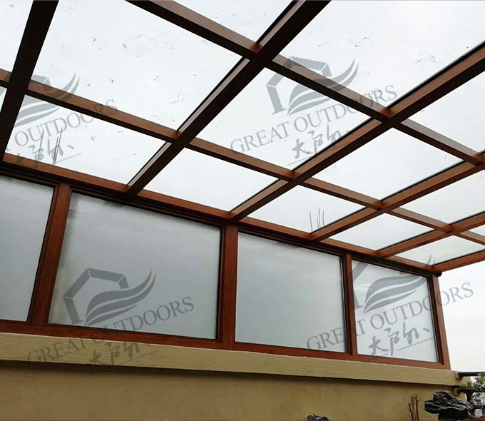 大戶(hù)外陽(yáng)光房采用高強(qiáng)度鋁合金為原材料,經(jīng)酸洗鉻化、氧化電泳或靜電噴涂,木紋轉(zhuǎn)印處理后,經(jīng)過(guò)精密設(shè)計(jì)造型,配合鋼化玻璃封閉,別具一格。隔熱保溫,防止紫外線(xiàn),美觀大方,可打造休閑或辦公空間,簡(jiǎn)潔、上乘、實(shí)用,為建筑提升整體檔次。